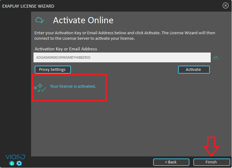 6. Click `Finish` to close the the Activation Wizard.<br>