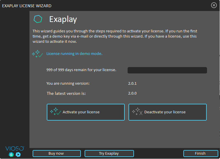 2. At the first start of  EXAPLAY, the License Wizard shows up: